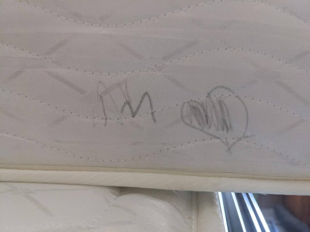 This artwork “grafitti” was found on a mattress that we supplied a child in need when they changed homes and no longer needed the twin mattress. We hope all our kids feel seen, loved and supported by their larger community!
